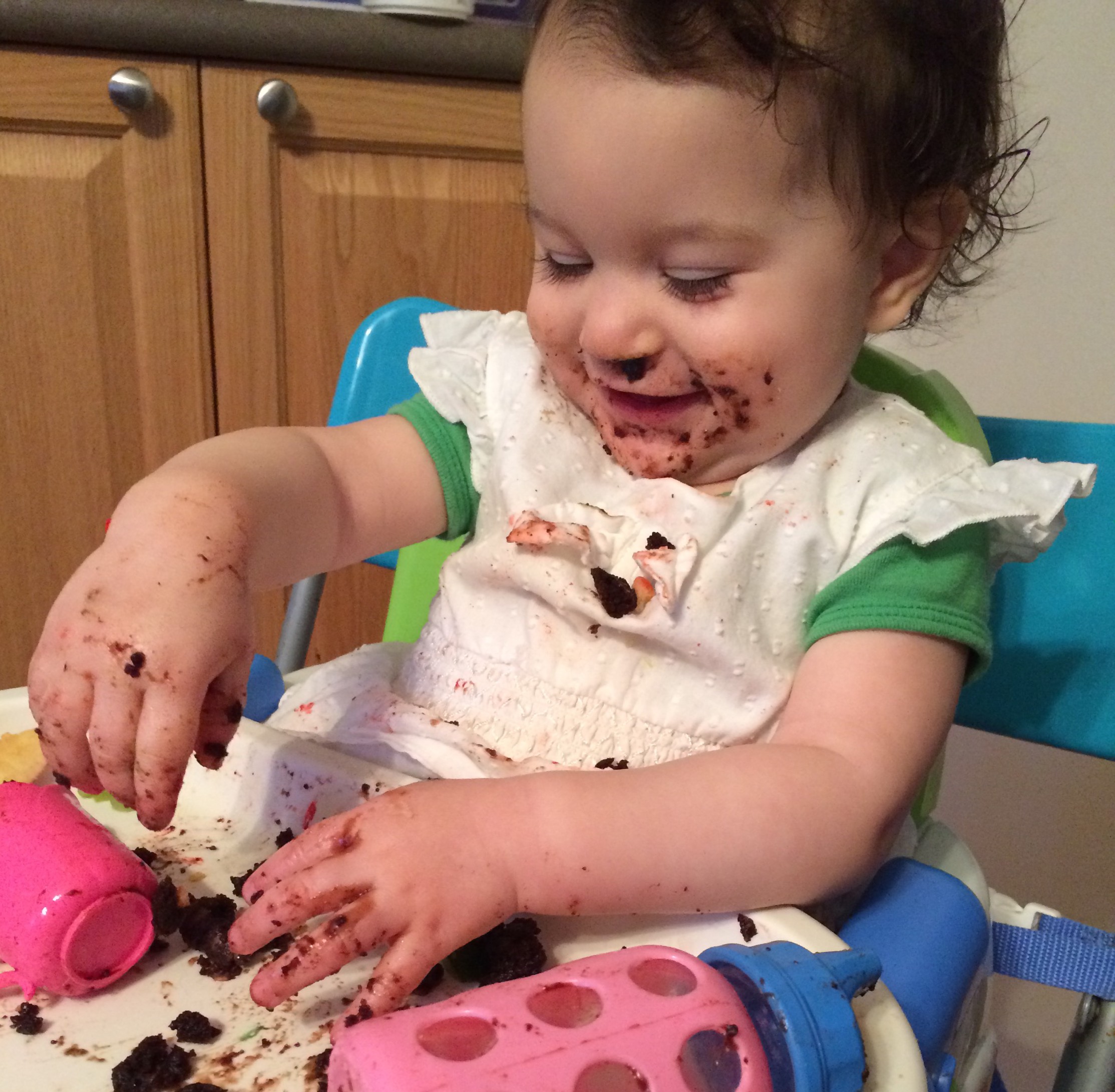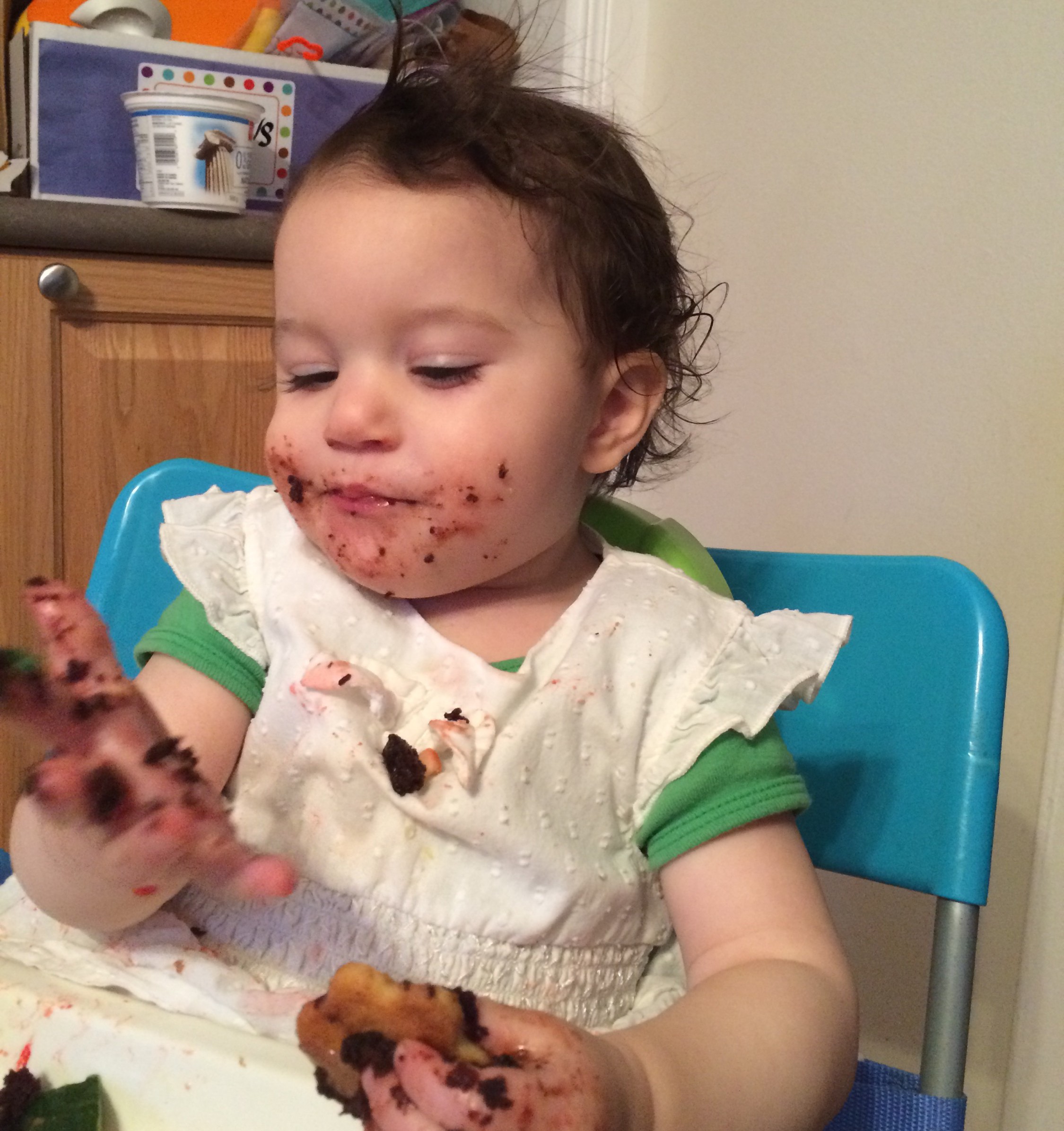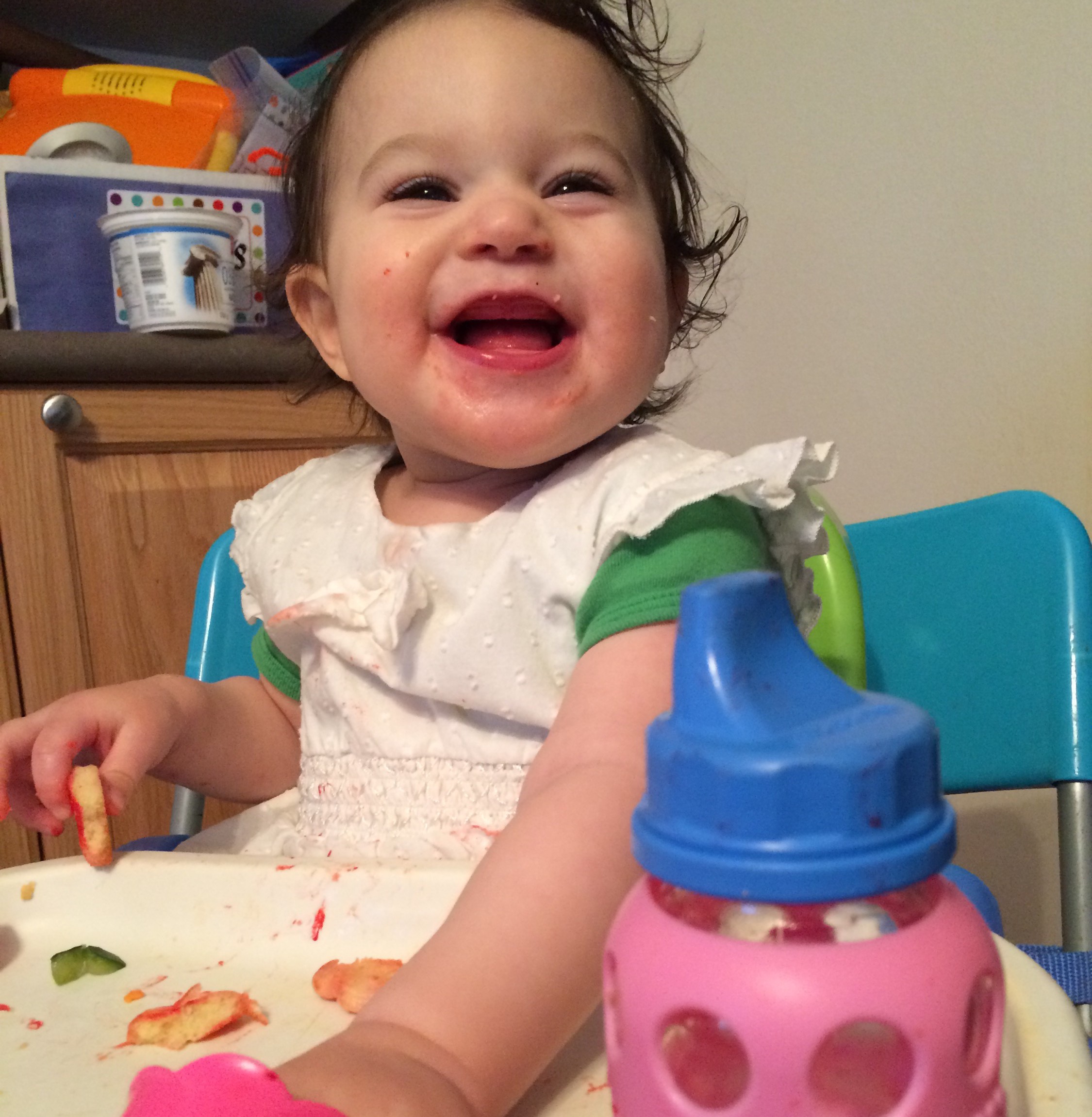 One hour labour/delivery should have prepared me for how fast she’d be but her growth spurts still sneak up on me. How is she already one year old? How did she get so big, so fast? G is a great thinker. She analyzes and then makes her move. She moves steadily and with determination. (E is fearless. She jumps in head first without considering consequences or even the succession of steps to accomplish her goals!) G thinks it through, but doesn’t hesitate. For a one year old, she is very good at follow-through! This is why she could roll (both sides) at 3.5 months, full on crawl at 5 months, and walk around like it was nothing at 11 months. Her siblings were fast, but they posses a different kind of determination. (Perseverance and stubbornness respectively) I enjoy watching her serious thinking face and the way she turns her hands out as if to say “how do you work?”.